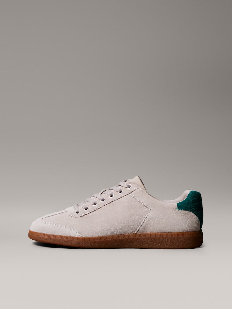 Sleek and contemporary, these suede sneakers feature a tonal wingtip detail on the toe, monochrome lacquered eyelets, and a contrasting placket at the back. They feature a tapered silhouette with subtle textural details.