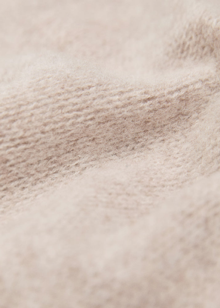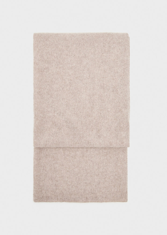 100% cashmere. Knitted fabric. This scarf has matching hat, gloves and socks.