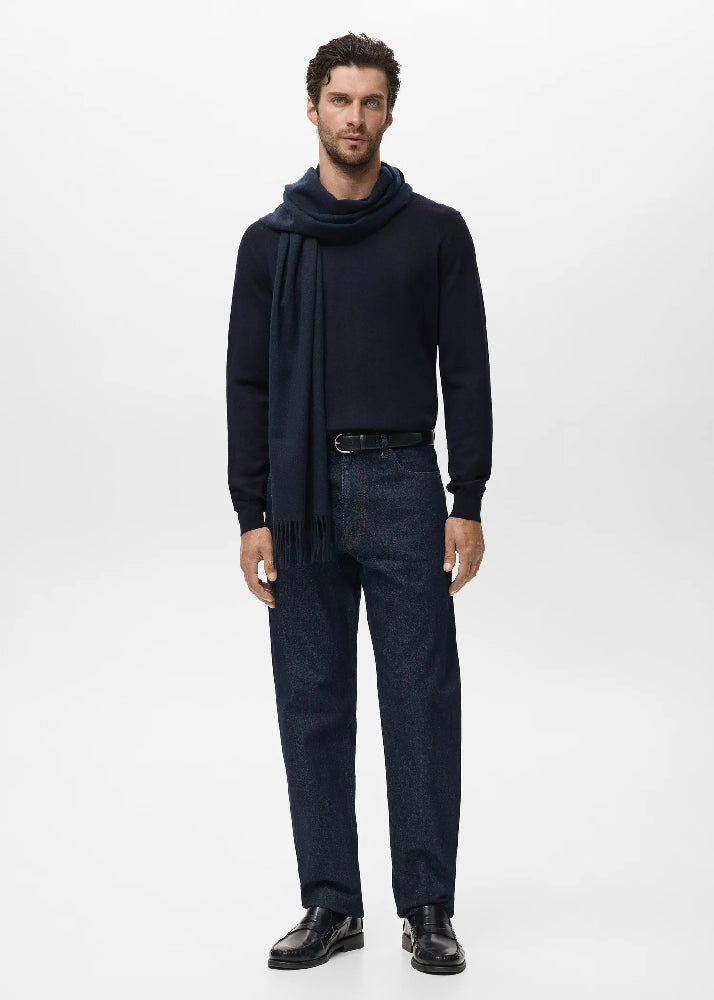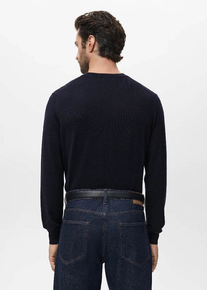 Straight-fit. 100% wool fabric. Fine-knit fabric. Round neck. Long sleeves. Ribbed collar, sleeves and hem.