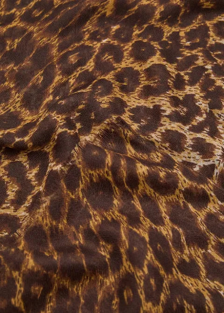 Lightweight fabric. Printed pattern. Animal pattern. Frayed finishes.