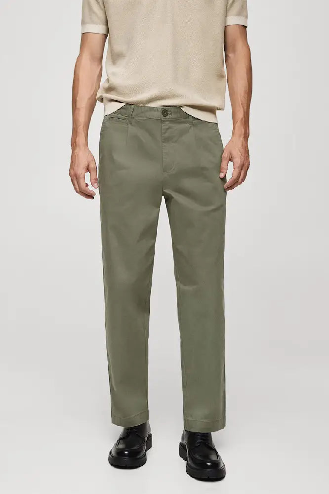 Regular Fit Pleated Cotton Trousers