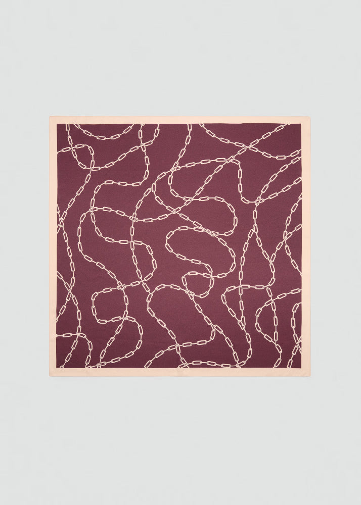 Fluid fabric. Fluid fabric with satin finish. Square design. Chain print. Hoop design. Embossed detail. Hook fastening.