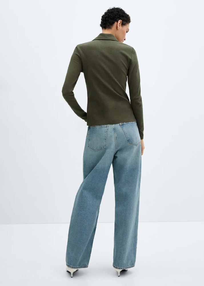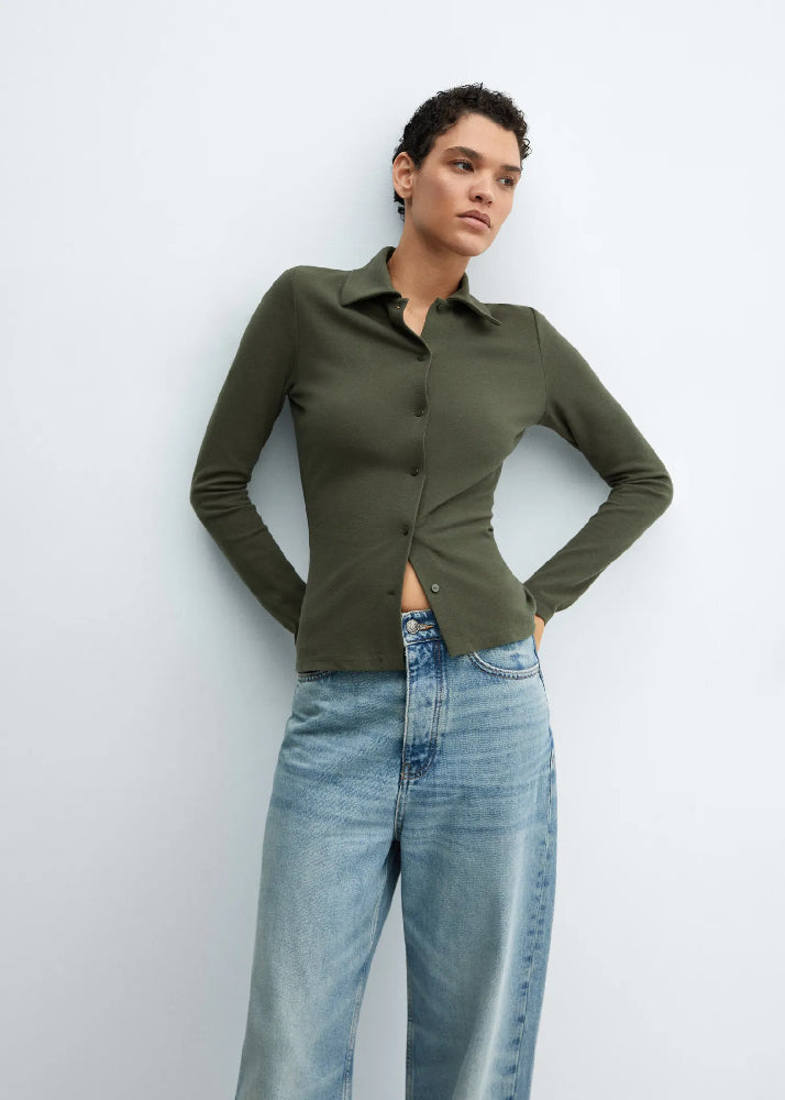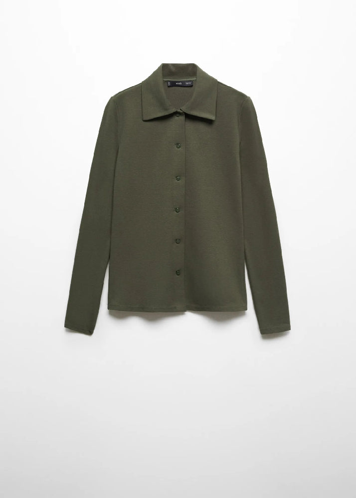 Cotton-blend fabric. Fine-knit fabric. Straight design. Shirt Collar.