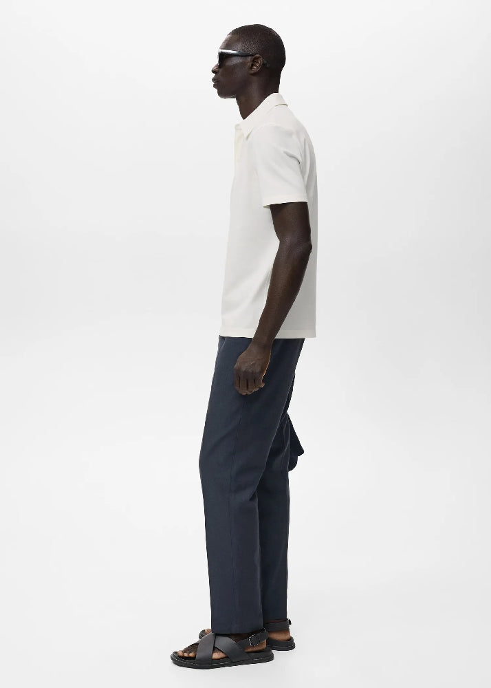 Cotton-blend fabric. Slim silhouette. Polo-neck with button closure