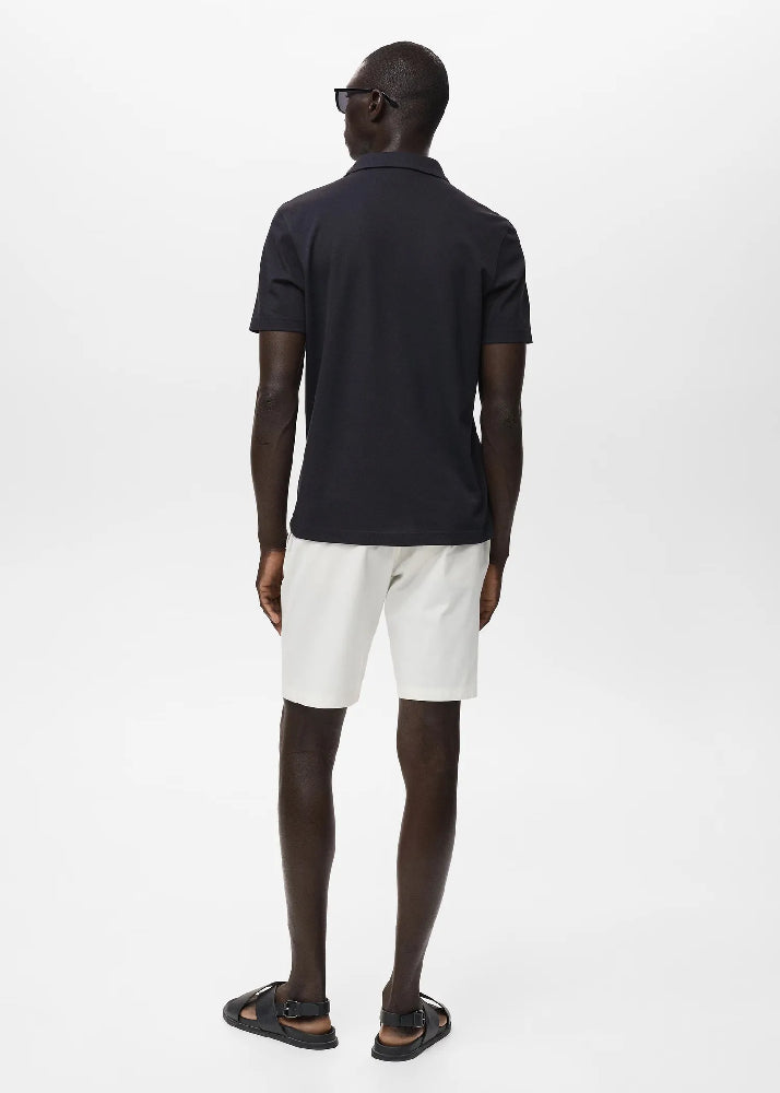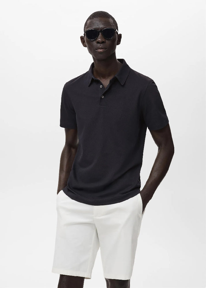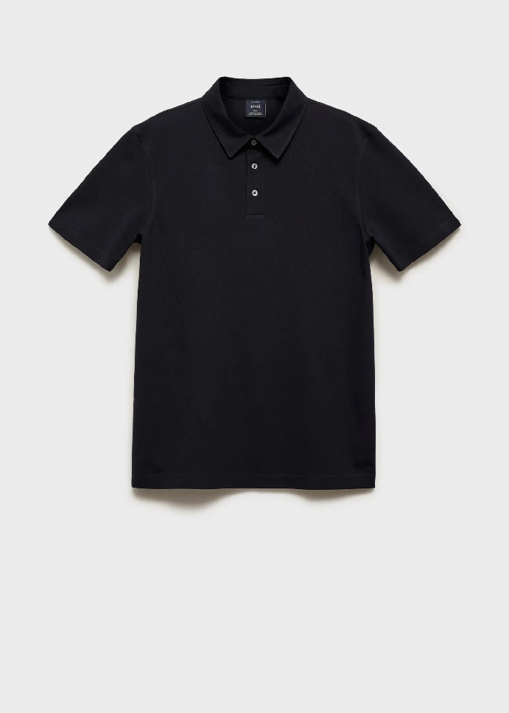 Cotton-blend fabric. Slim silhouette. Polo-neck with button closure