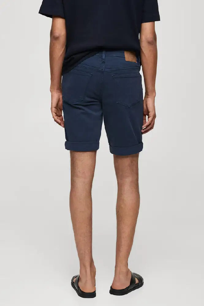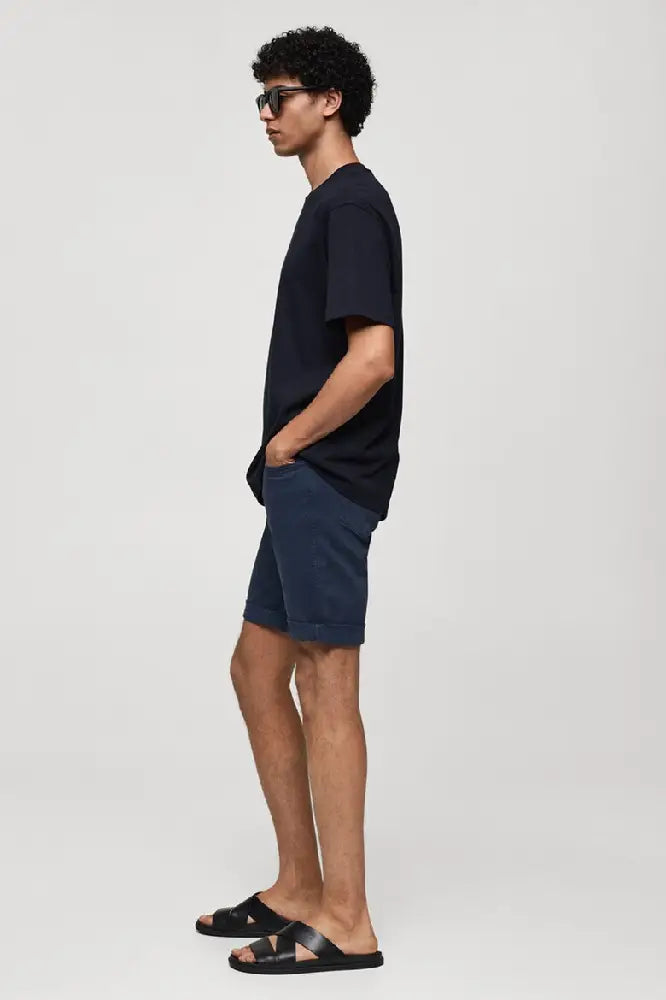 Slim fit. Denim-style cotton fabric. Belt loops. Zip and button fastening. Two side pockets. Coin pocket. Two patch pockets at the back. Cuffed hem.