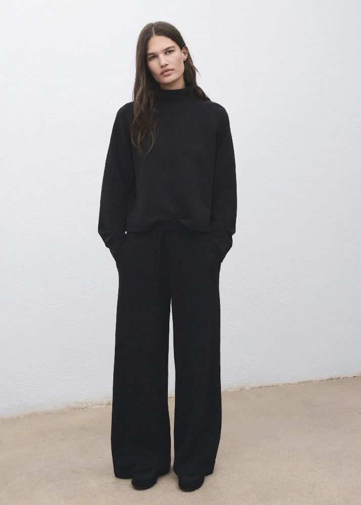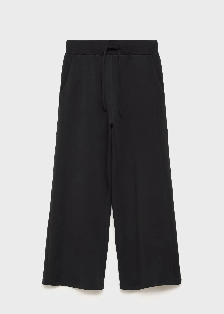 Stretch fabric. Long design. Straight Design. Jogger design. Mid-rise. Elasticated waistband. Adjustable drawstring. Two side pockets. No Fastening. Total look.