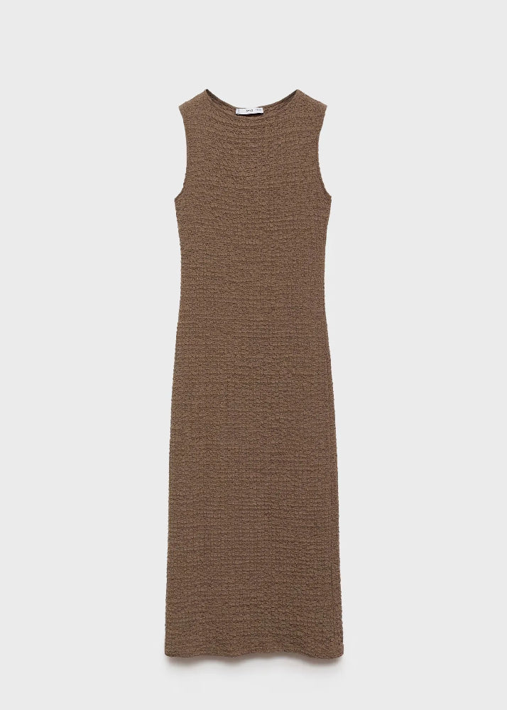Cotton blend fabric. Textured fabric. Long design. Straight design. Round neck. Sleeveless. Wide straps. Back-slit hem. No Fastening.