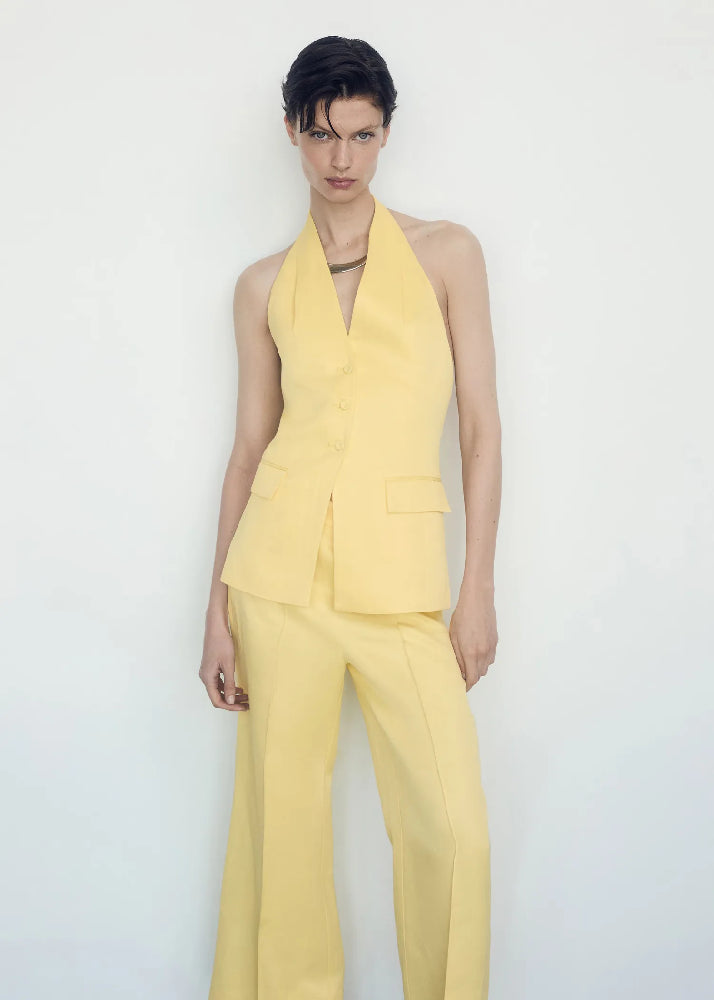 Flared Straight Trousers With Pleated Detail