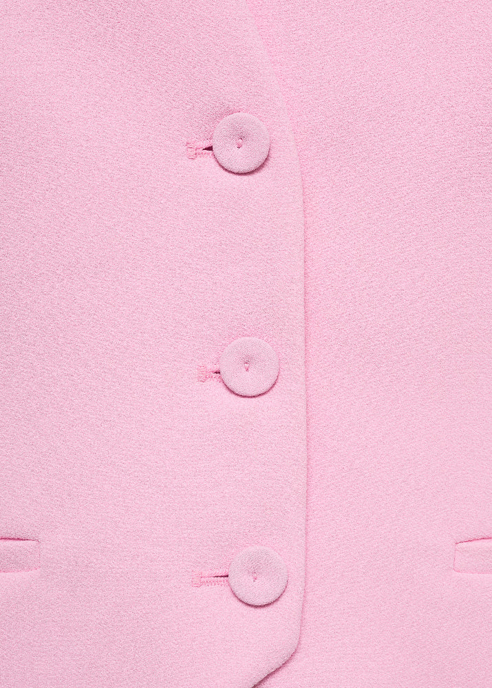Crop design. Straight Design. Halter neck. Sleeveless. Inner lining. Front closure with buttons. Two front welt pockets