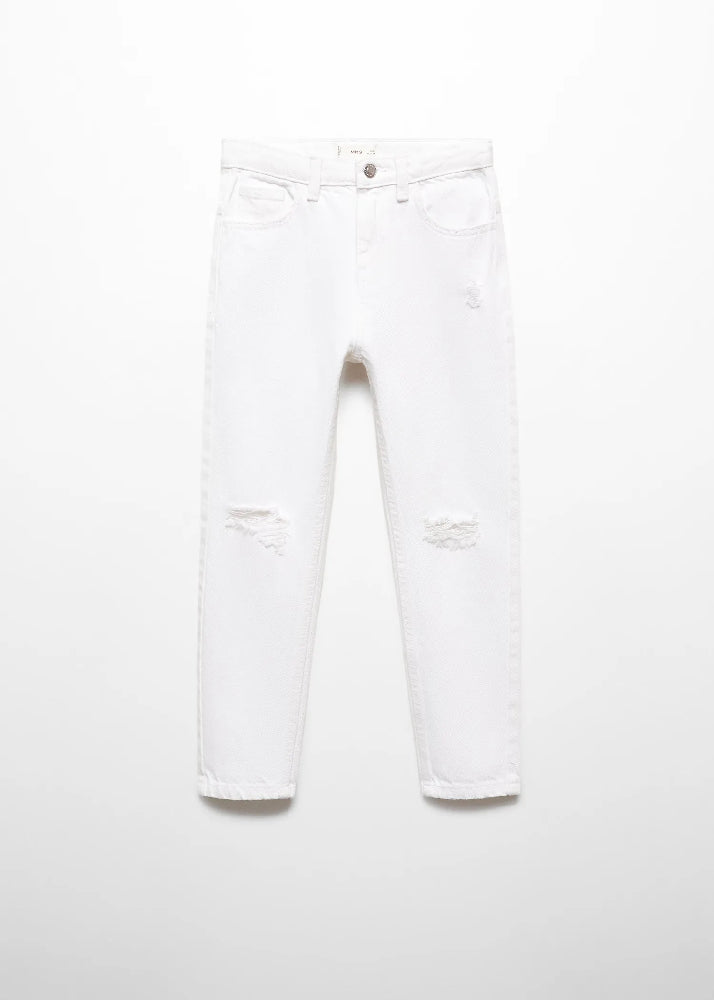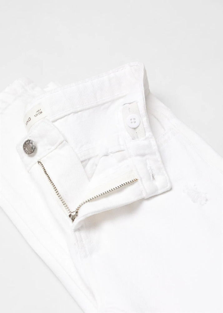 Long Design. Straight Design. Five Pockets. Medium Waist. Decorative Rips. Zip And Button Fastening.