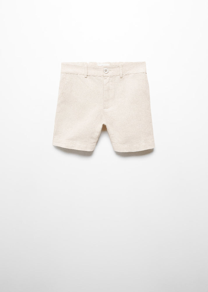Party And Ceremony Collection. Linen Fabric. Short Design. Chinos Style. Mid-Rise. Elasticated Waistband. Zip And Button Fastening.