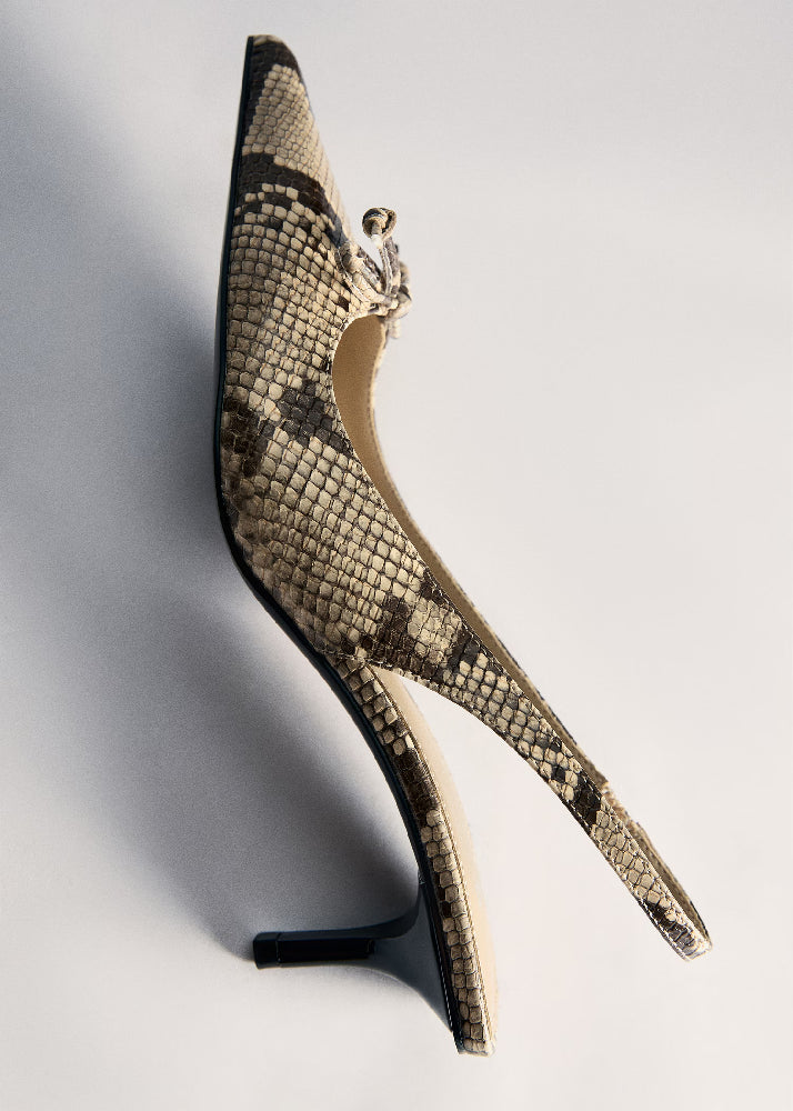 Slingback design. Faux leather. Pointed. Kitten heel. 4 cm heel.