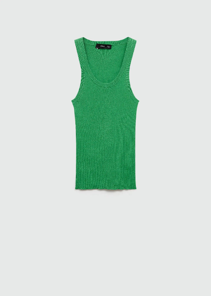 Fine-knit fabric. Round neck. Round neck. Thin straps. Fitted design. Cable knit fabric. Sleeveless.