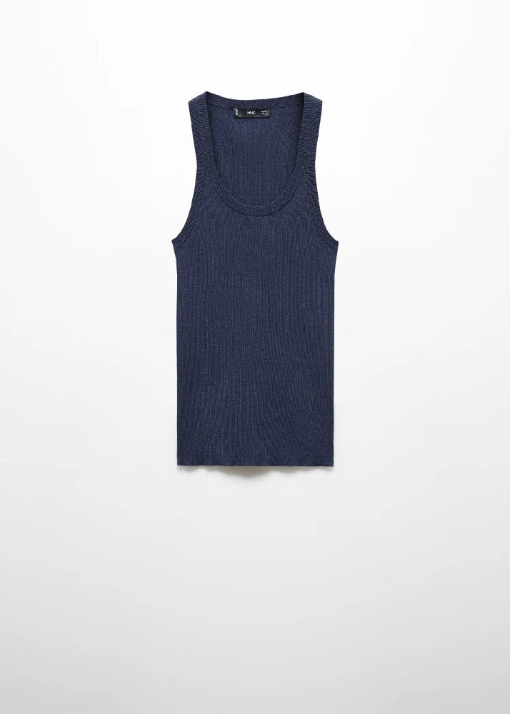Fine-knit fabric. Round neck. Round neck. Thin straps. Fitted design. Cable knit fabric. Sleeveless.