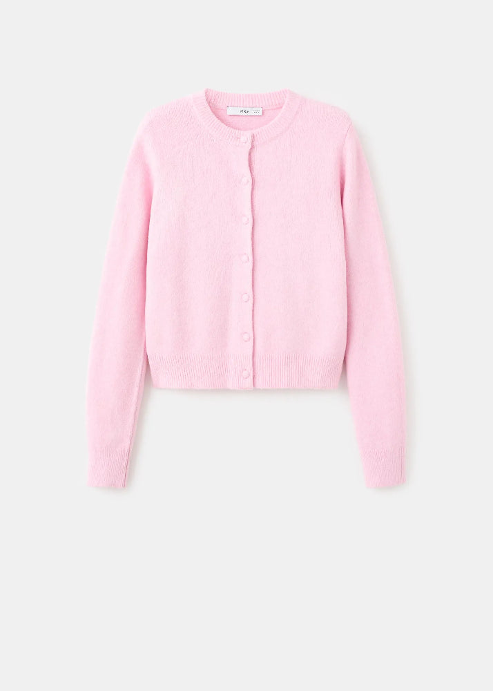 Crafted from medium-knit fabric, this straight design features a box neck and long sleeves. The front button fastening adds functionality