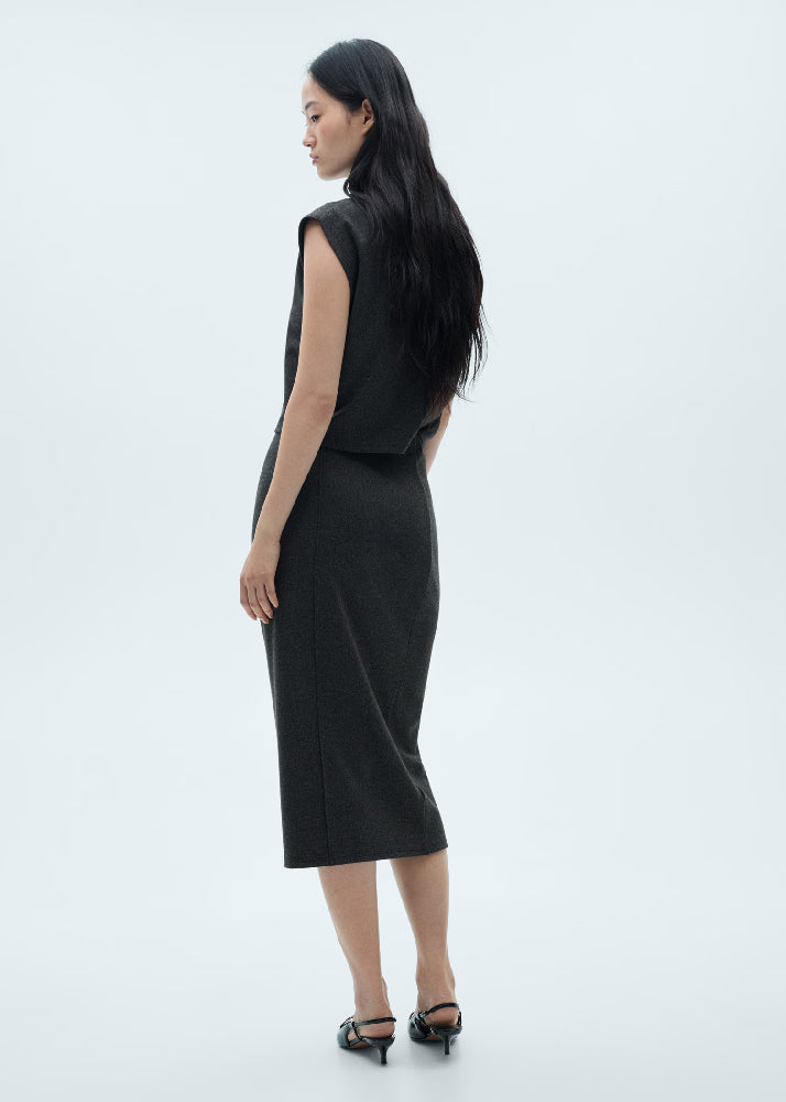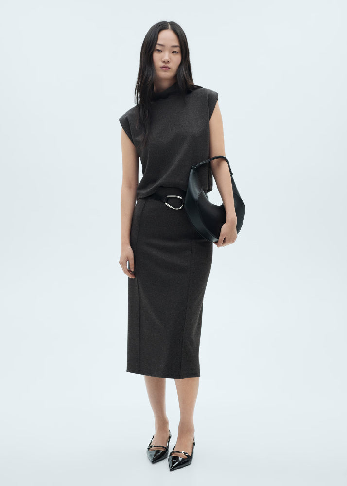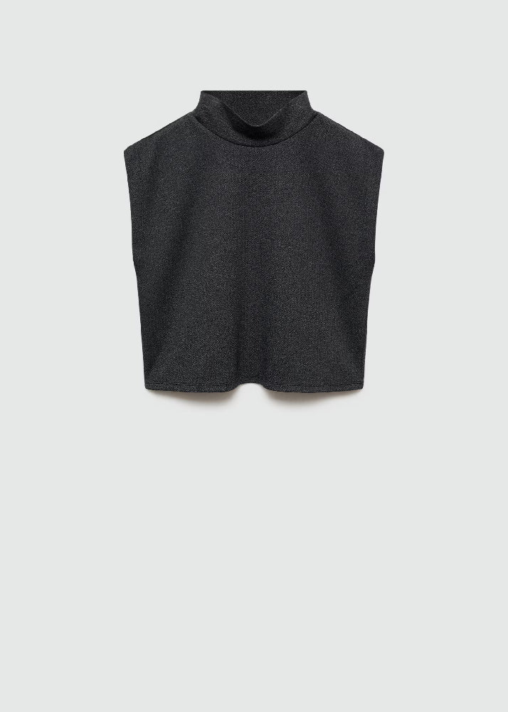 Knitted fabric. Straight design. Crop design. High collar. Sleeveless. Total look.