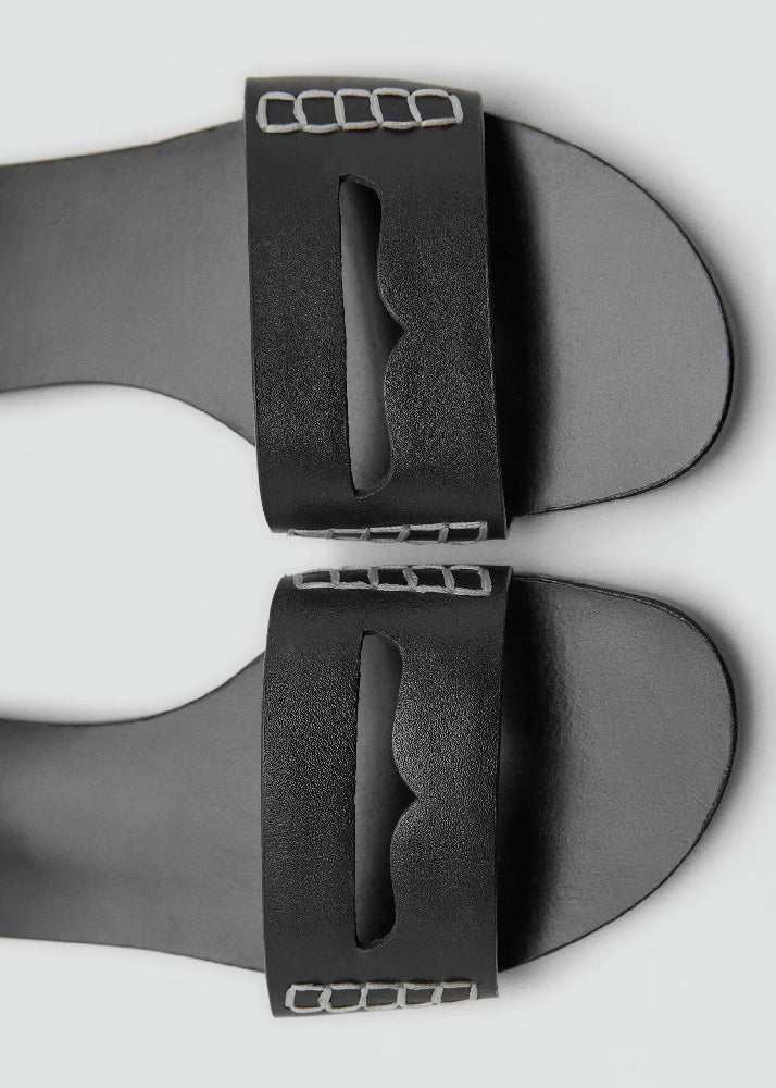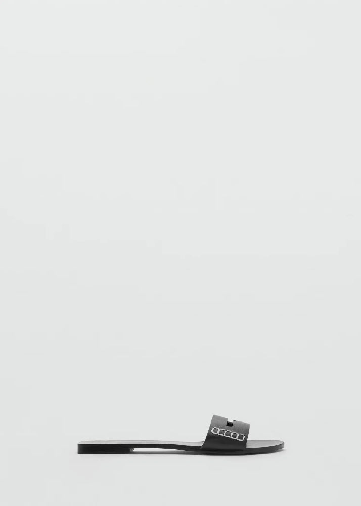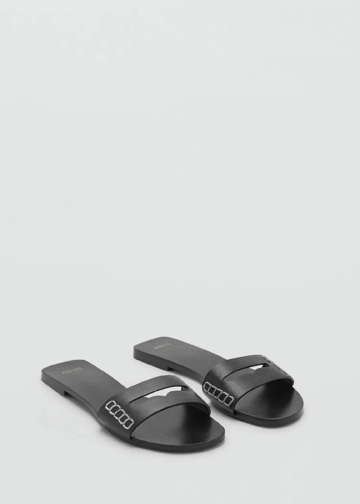 100% bovine leather. Flat. Slingback design. No closure. Inner lining. Moccasin-style strap.