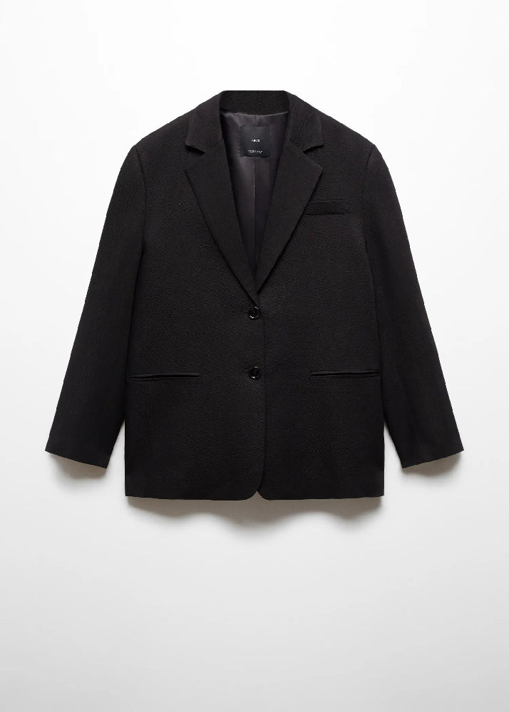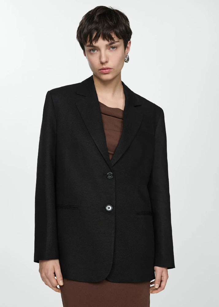 Linen mix. Oversize design. Straight design. Lapel-collar V-neck collar.
