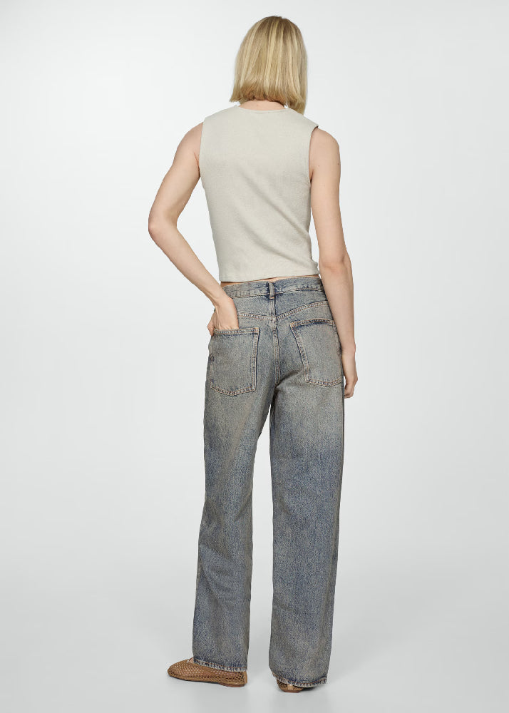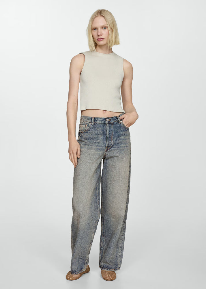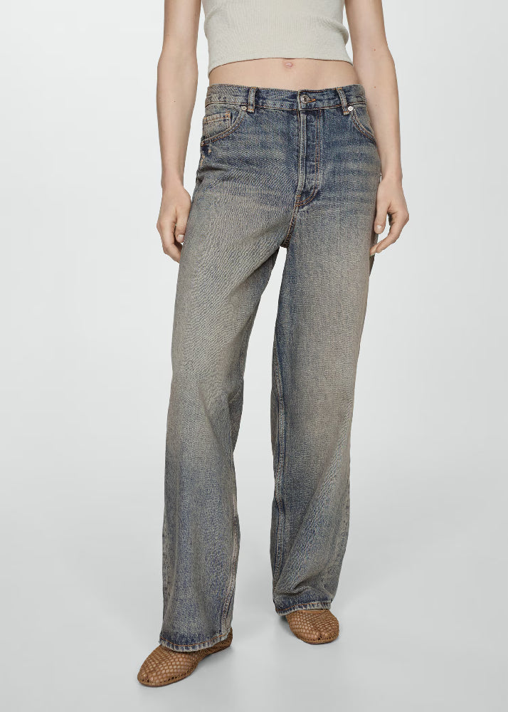 Denim-style cotton fabric. Long design. Wide-leg design. Loose design. Mid-rise.