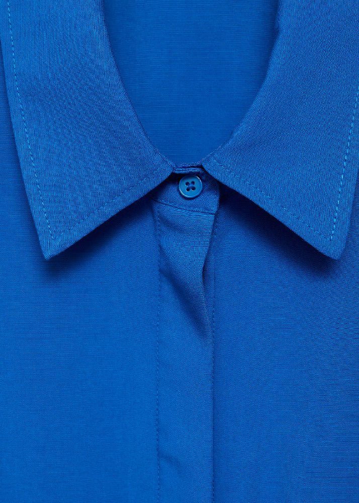 Linen and lyocell blend fabric. Fluid fabric. Long design. Straight Design. Shirt Collar. Long sleeves with buttoned cuffs. Front button fastening with concealed placket. Two front flap pockets.