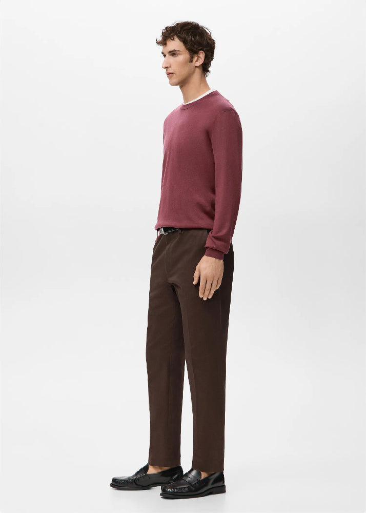 Regular fit. 100% wool fabric. Fine-knit fabric. Round neck. Long sleeves with elastic cuffs.