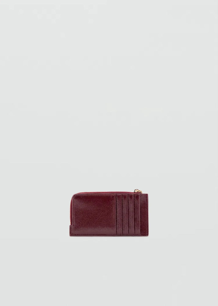 Medium. Faux leather. Five card slots. Zipped pocket. Metallic bead.
