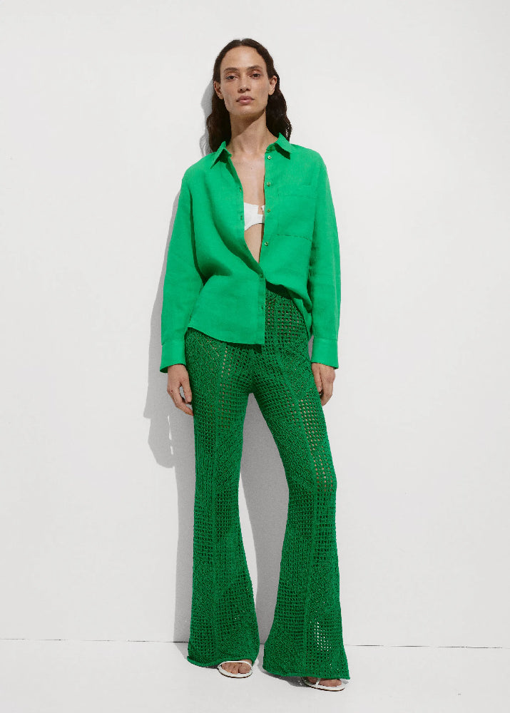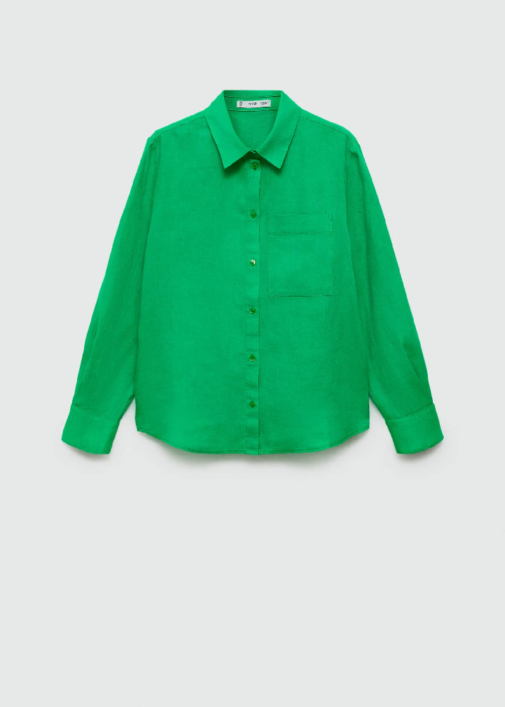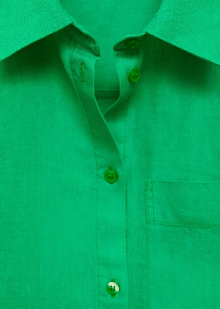 100% linen fabric. Straight Design. Shirt Collar. Long sleeves with buttoned cuffs. Patch pocket on the front. Button fastening at the front.