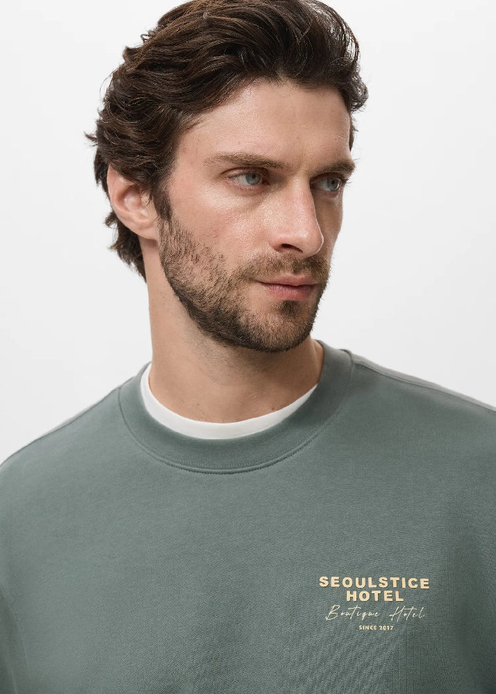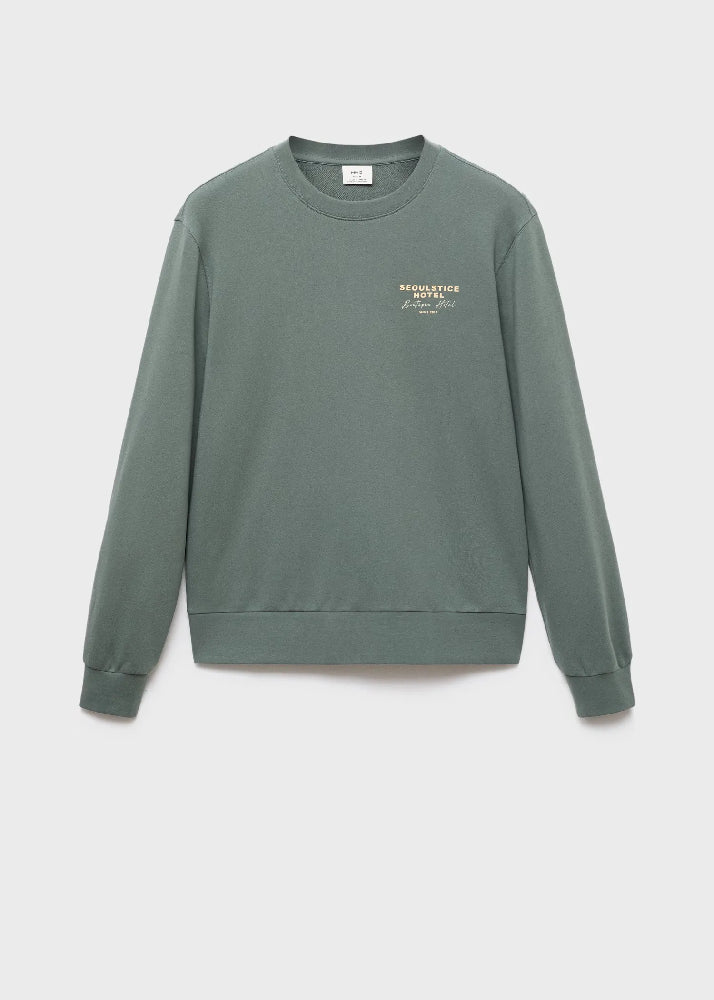 100% cotton fabric. Regular fit. Long sleeve. Text printed on the side. Text stamped on the back. Ribbed hems.