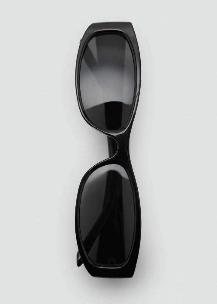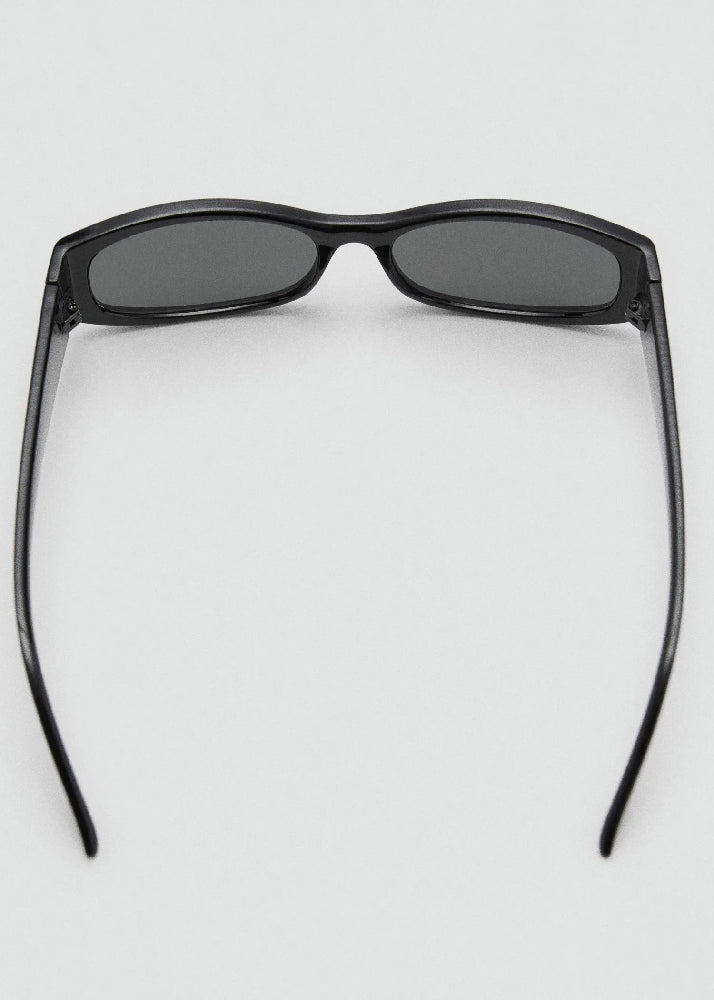 Resin frame. Rectangular design. Total UV protection factor with category 3 filter. These sunglasses are made of recycled post-industrial waste from a polycarbonate eyewear manufacturing process. The resulting material has the same properties as standard PC in overall flexibility and durability performance.