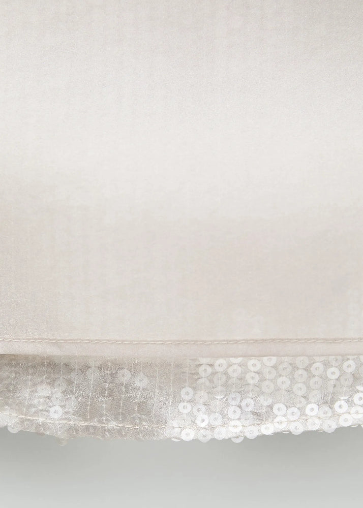 Double layer. Embroidered with sequins. Short Design. Straight Design. Mid-rise. Side zip closure. Inner lining.