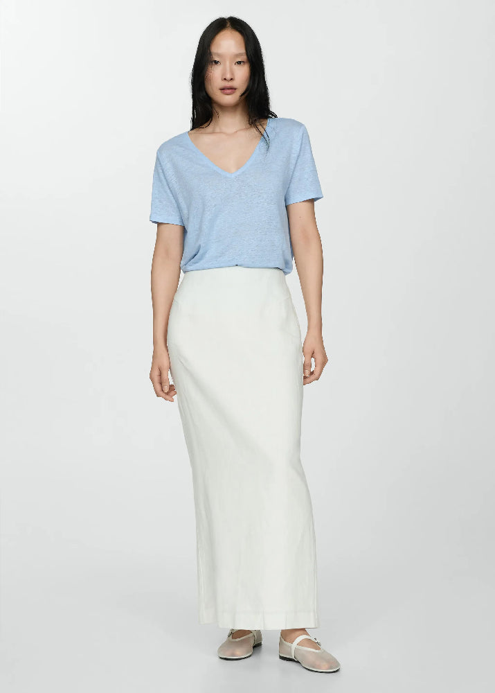 100% linen fabric. Straight design. V-neck. Short sleeve. No fastening. Available Plus. Regular fit.