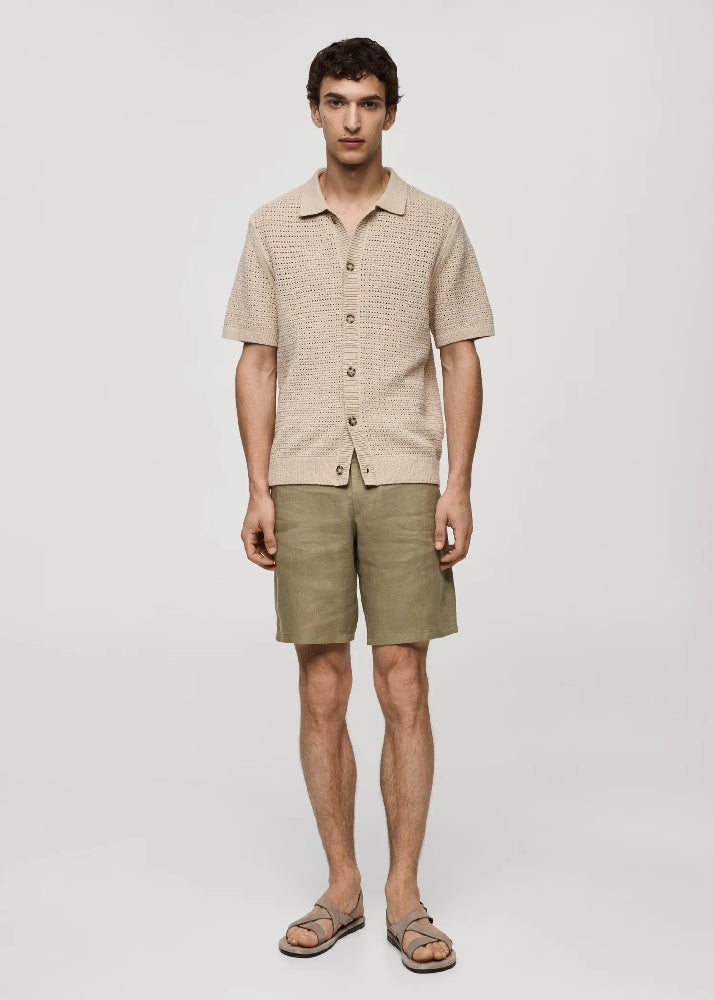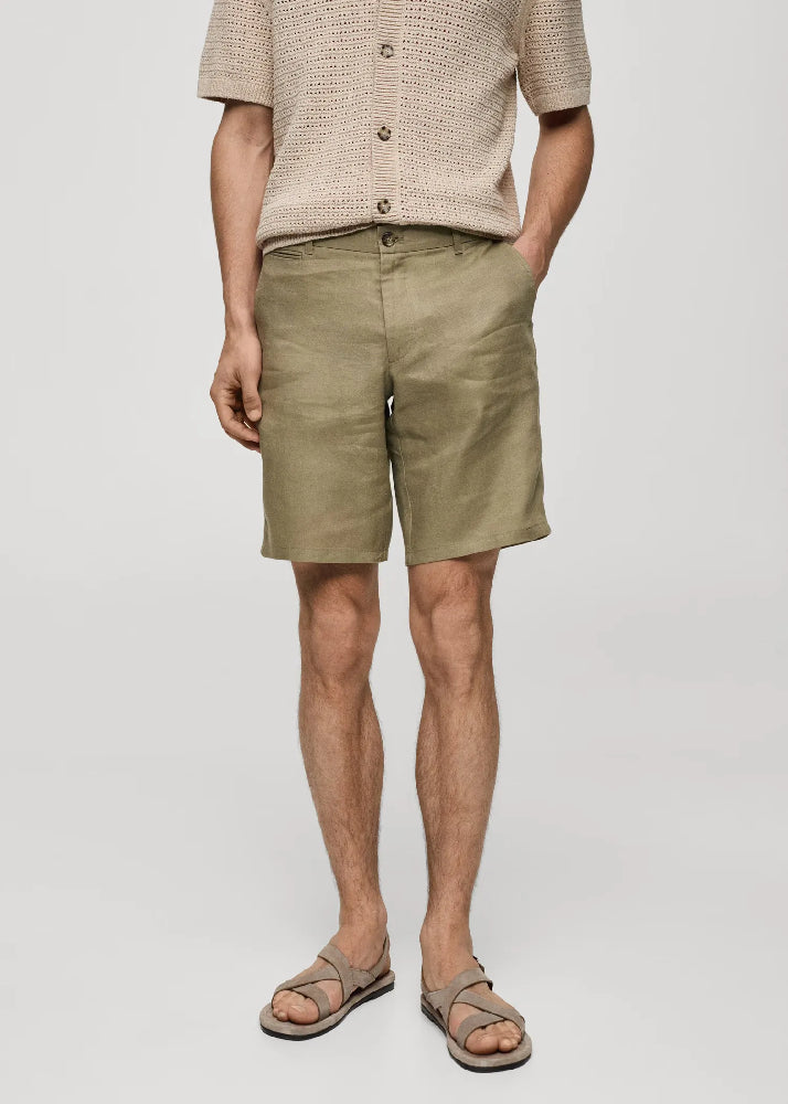 Antoine Griezmann Campaign. Slim fit. 100% linen fabric. Belt loops. Front fastening with double-breasted buttons and zip