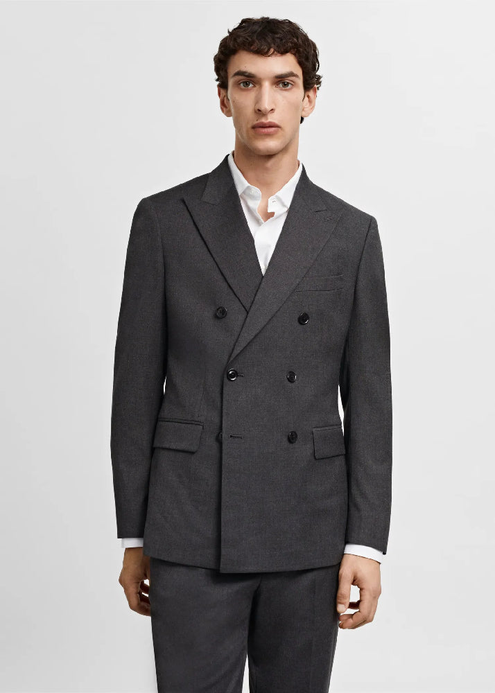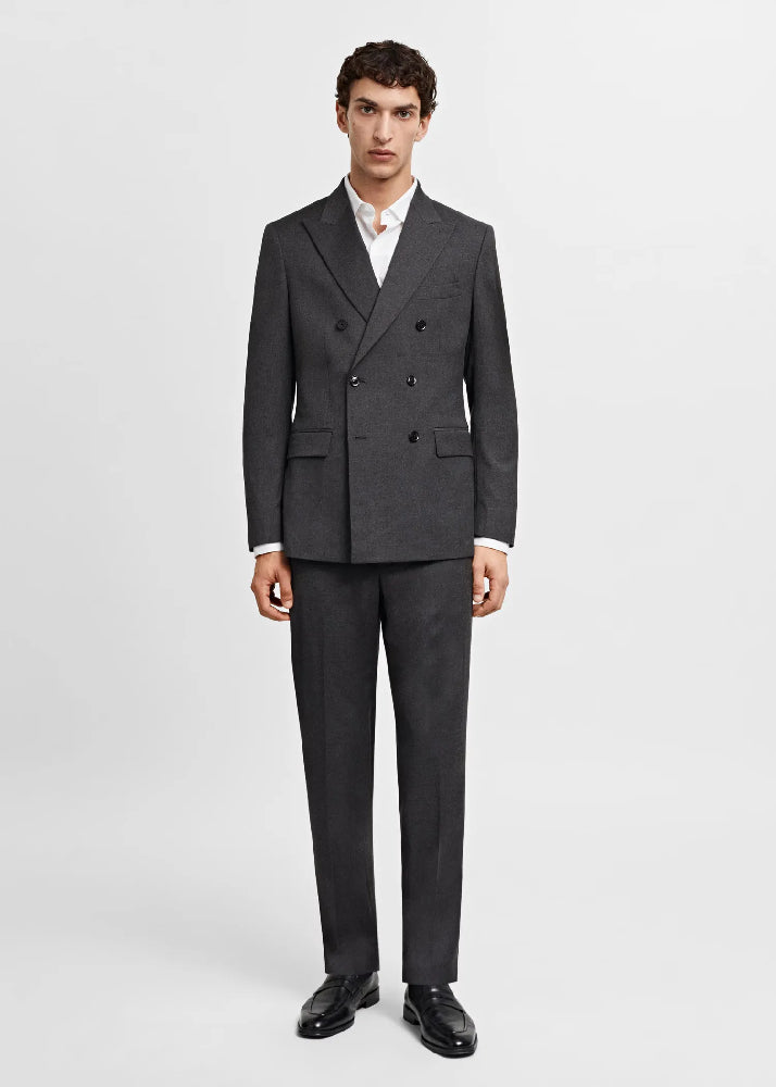 Tailoring collection. Wrap detail. Slim fit. Comfort Stretch: Stretch fabric for added comfort. Notch lapels and buttonhole