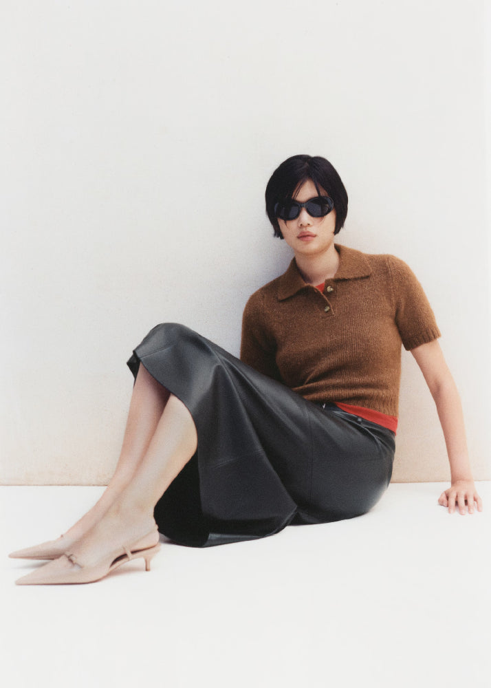Slingback design. Faux leather. Pointed. Kitten heel. 5 cm heel. No Fastening. Decorative buckle.