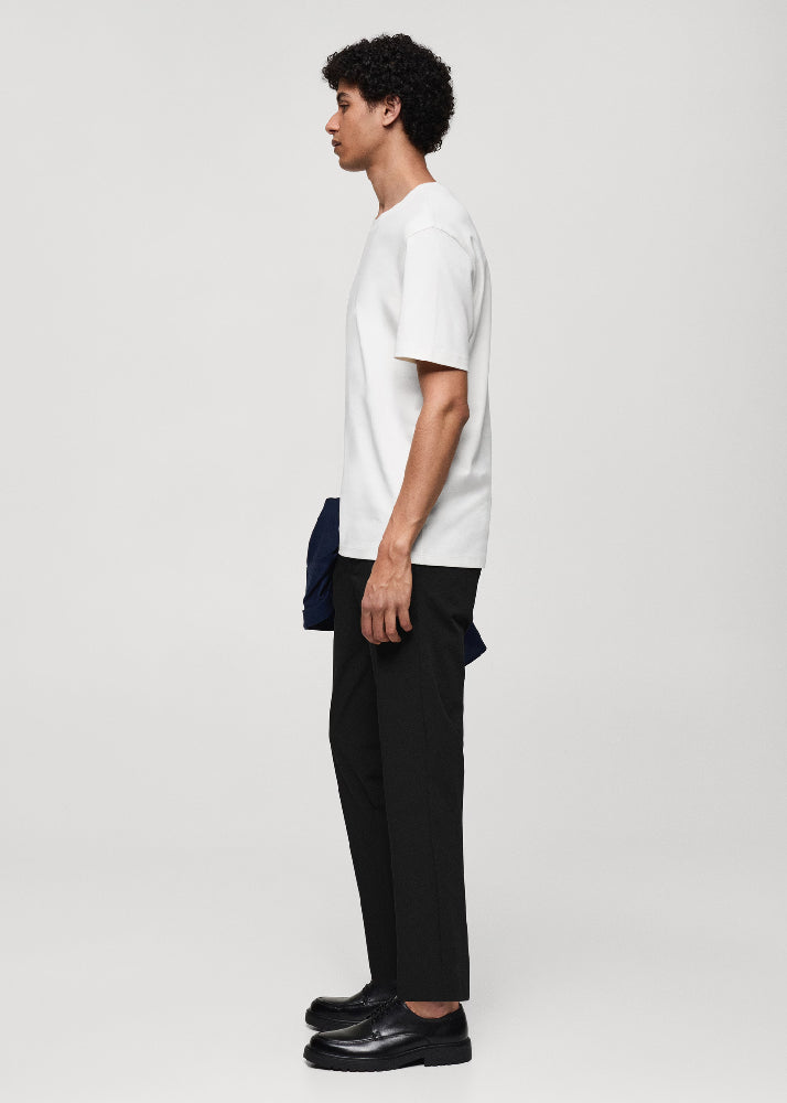 The beige colour is an online exclusive. Easy-care fabric. Bi-stretch fabric: its flexibility in all directions provides adaptability and comfort.