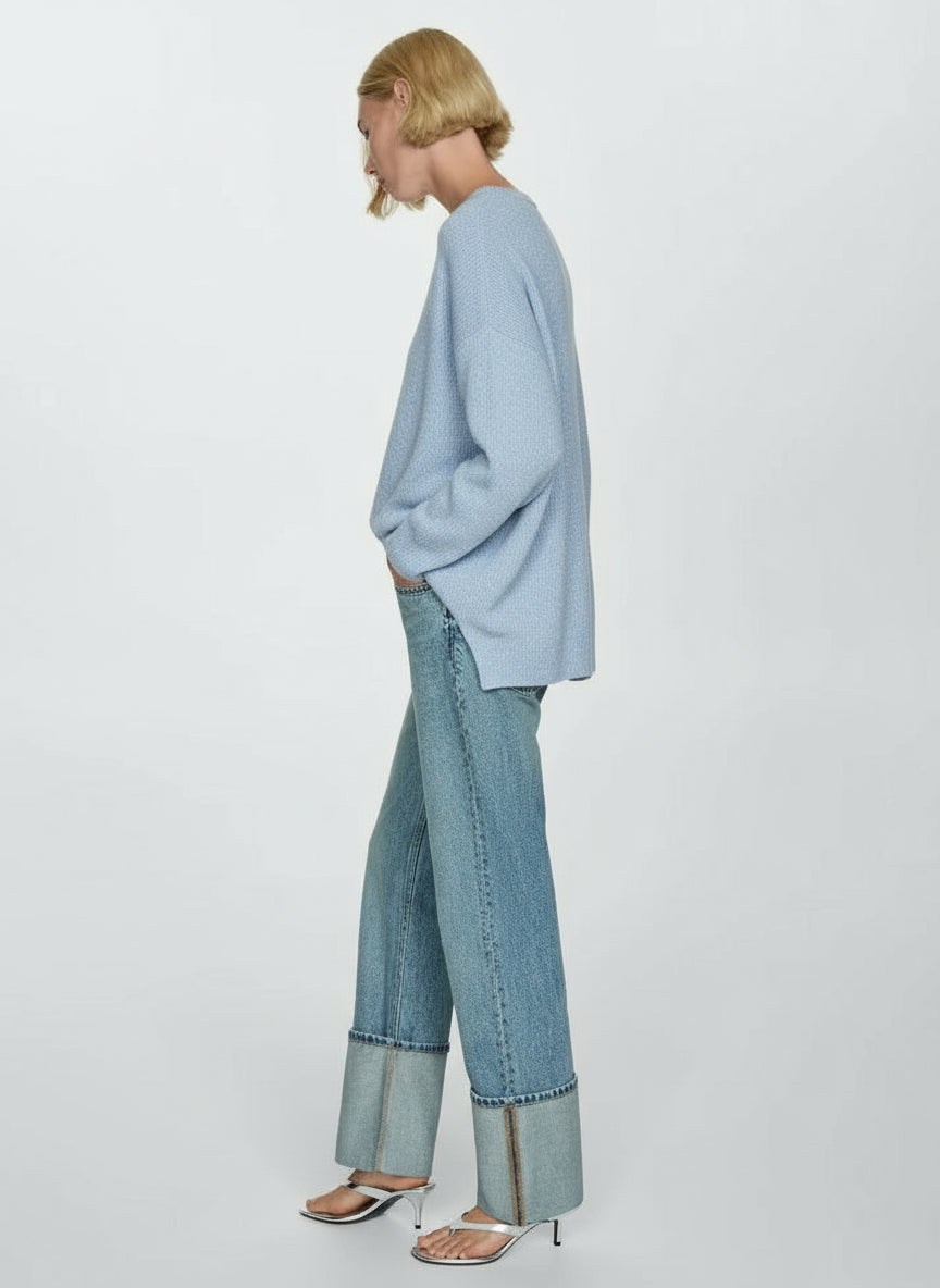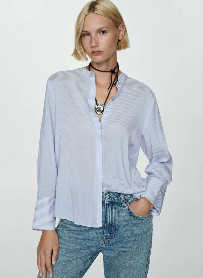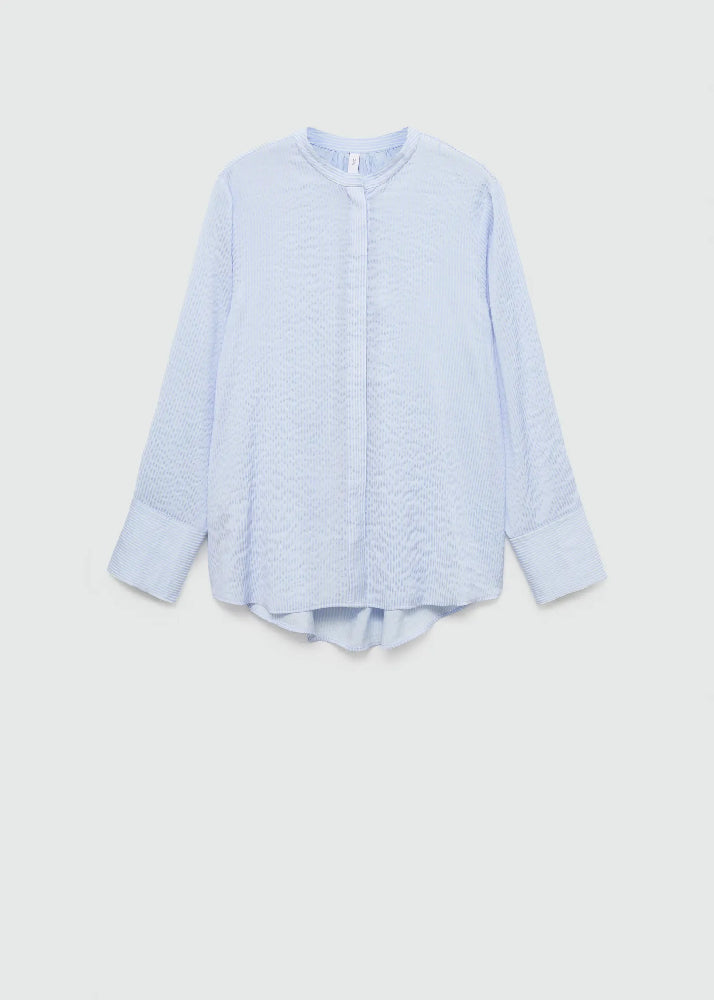 Fluid fabric. Straight Design. Round neck. Long sleeves with buttoned cuffs. Striped design. Front closure with buttons.