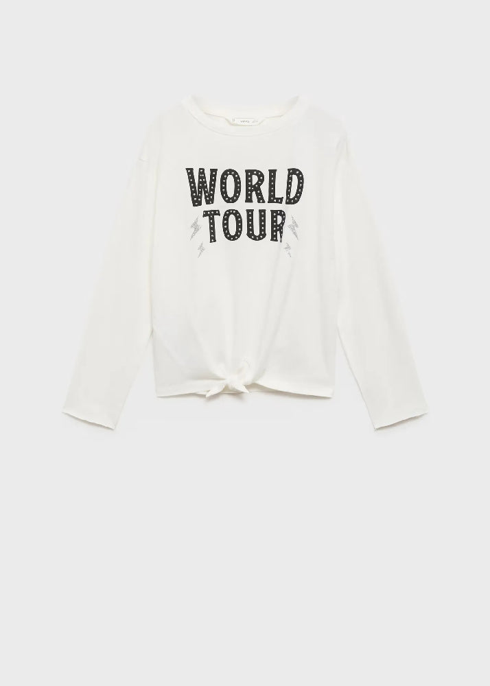 Decorative studs. Printed details. Crew neck. Long sleeves. Tie closure. 100% Cotton. Straight design