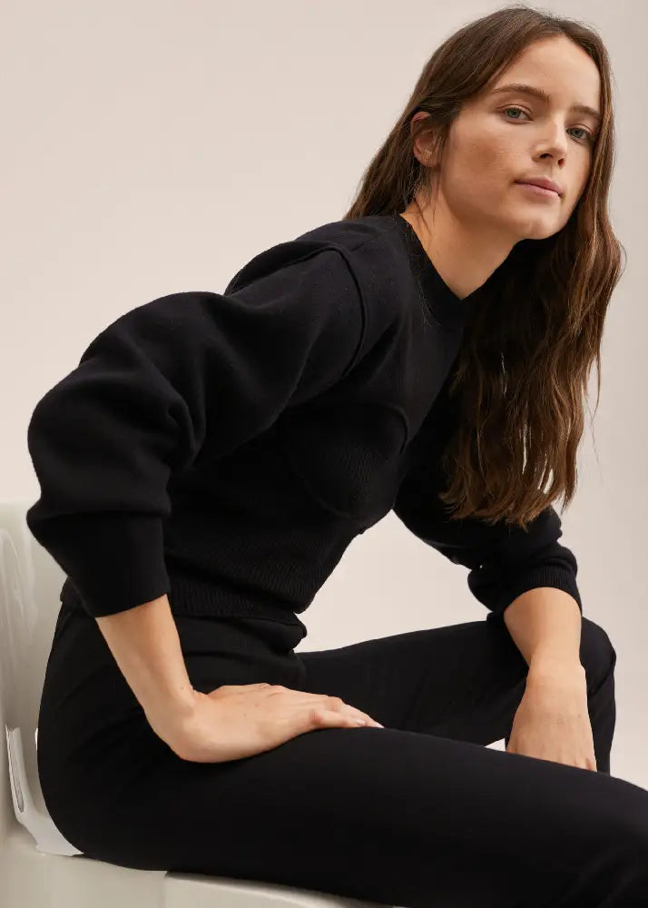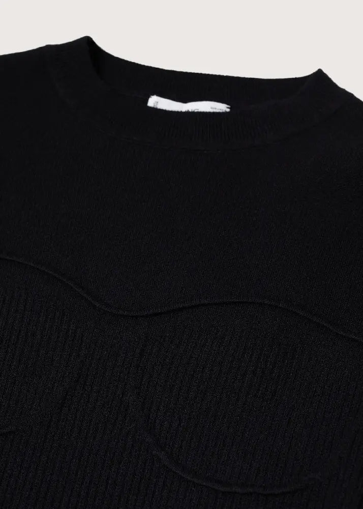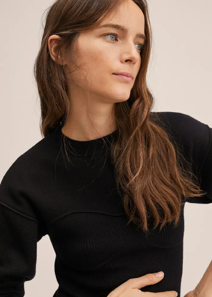 Fine knit fabric. Standard design. Unclosed. Slim fit. Committed Collection. Knitted fabric. Ribbed panels. Short design. Tailored dress. Bra effect design. Rounded neck. Long sleeve.