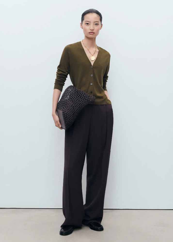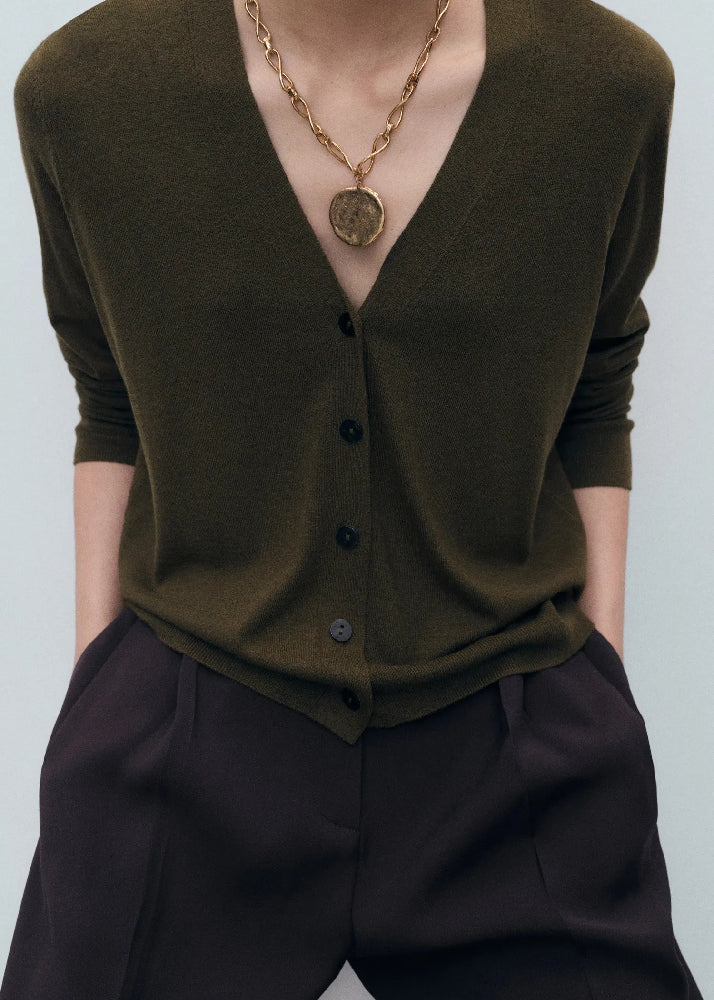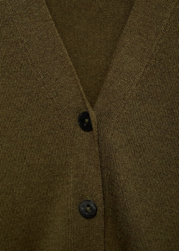 Crafted from fine-knit fabric, this straight design features an elegant V-neck and long sleeves. The front button fastening adds functionality.