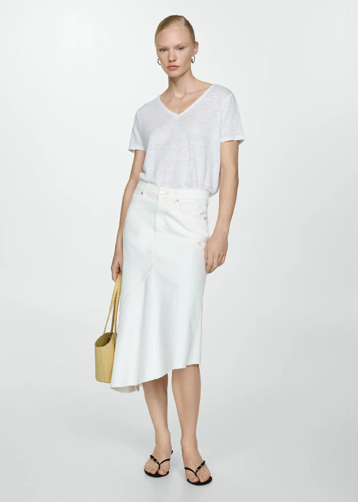 100% linen fabric. Regular fit. Straight design. V-neck. Short sleeve.