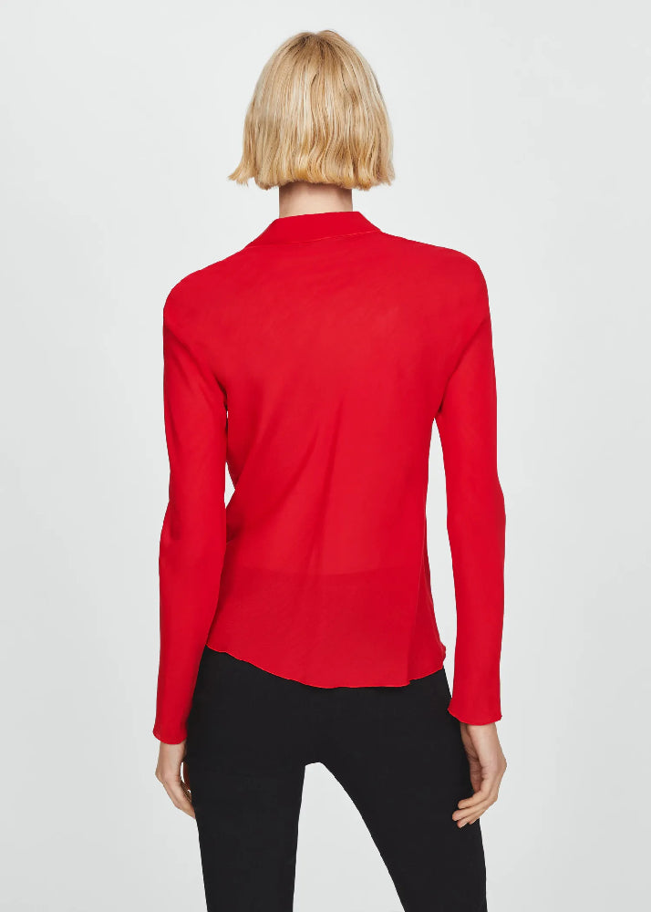 Fluid fabric. Straight design. Shirt Collar. V-neck. Long sleeve