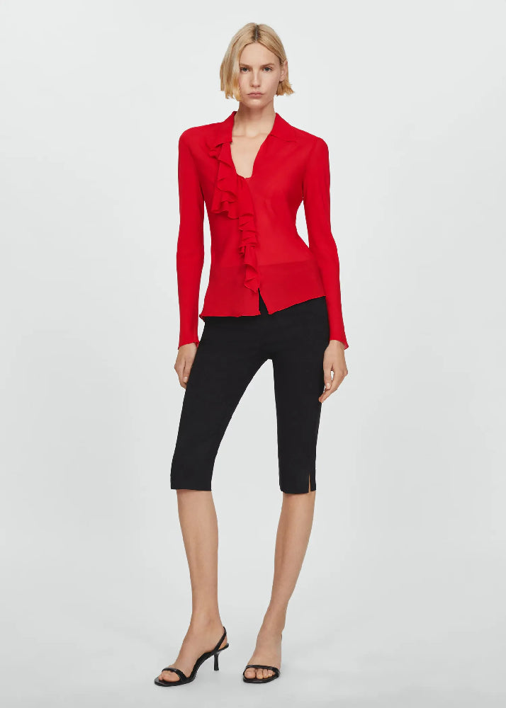 V Neck Ruffled Blouse