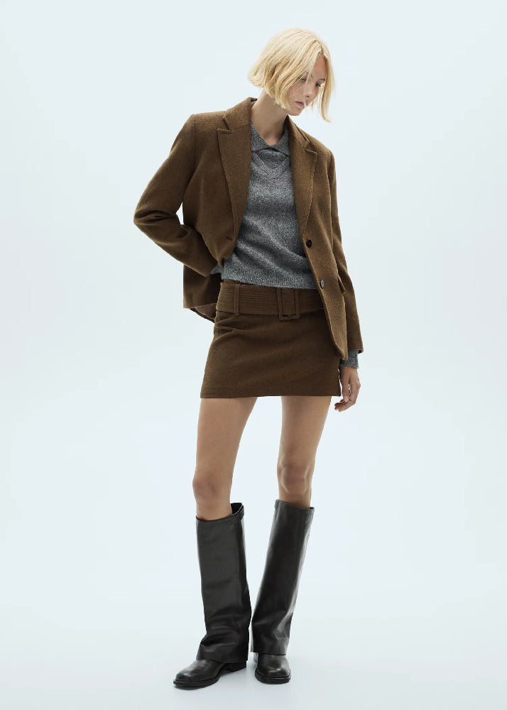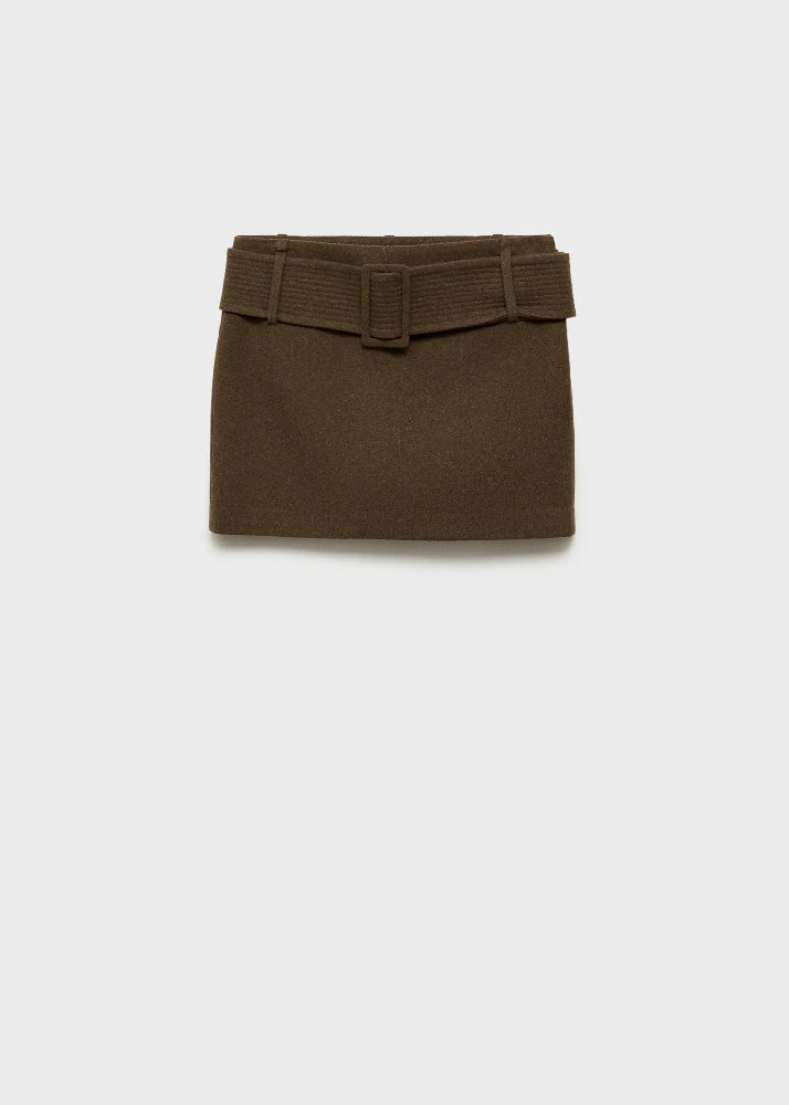 Wool Mini Skirt With Belt