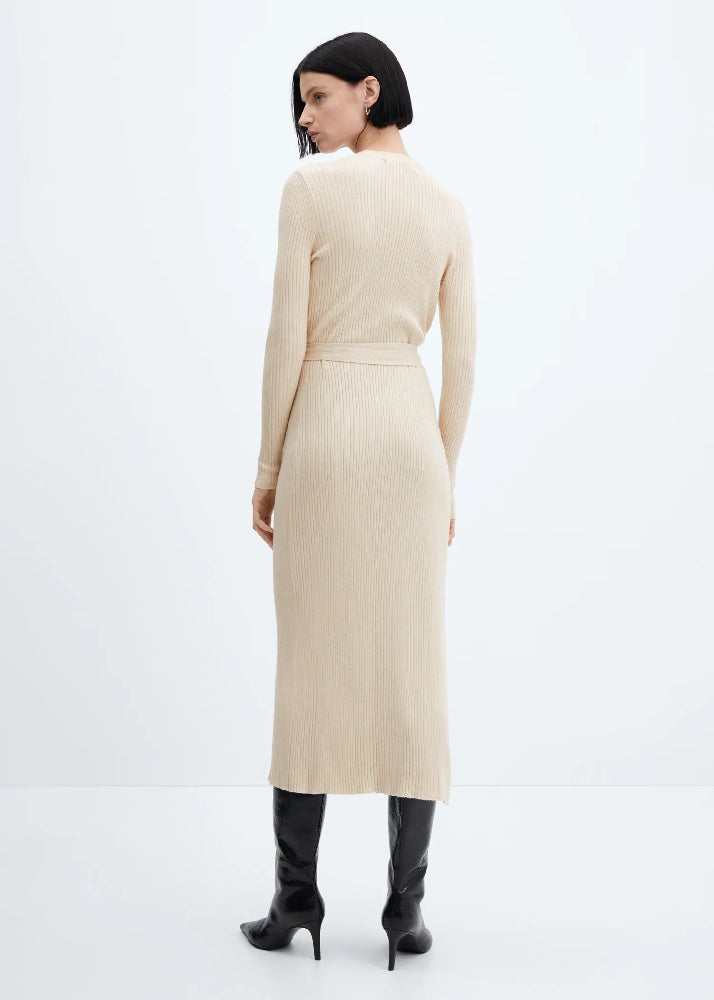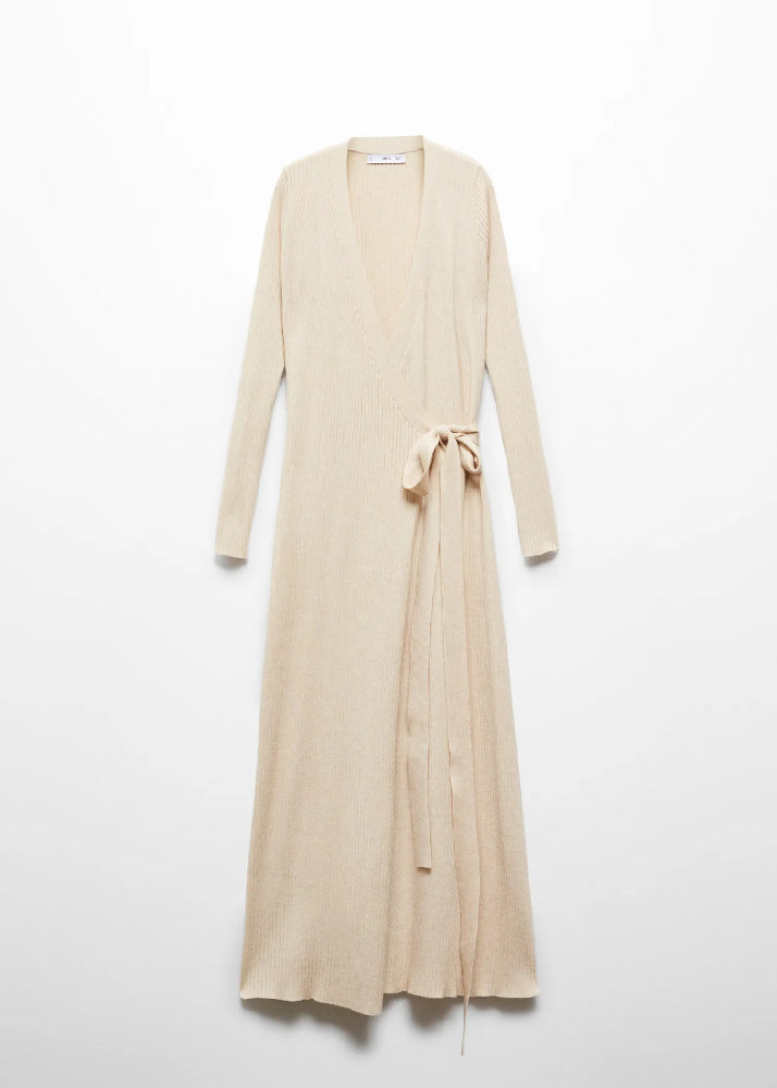 Cable knit fabric. Midi design. Straight design. Wrap design