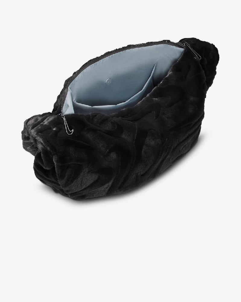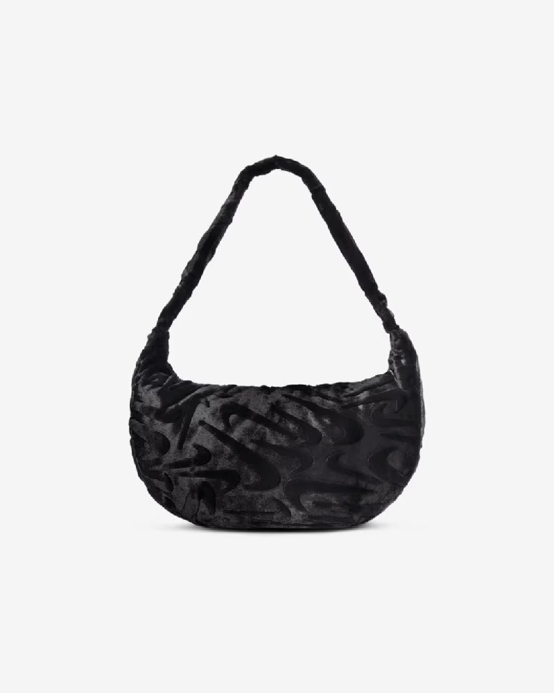 A sleek silhouette pairs with trendy faux fur fabric for all your daily essentials. Carry it by hand or adjust the cinched strap to wear it as a sling or cross-body bag. A small-item snap pocket inside helps keep your valuables organised.