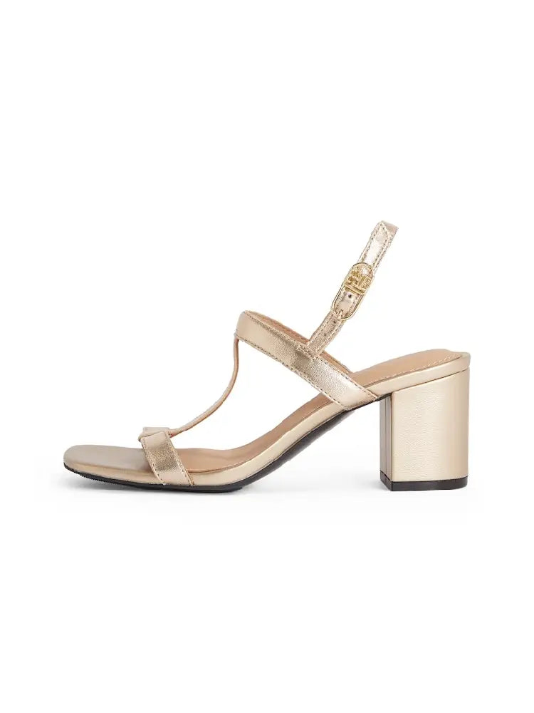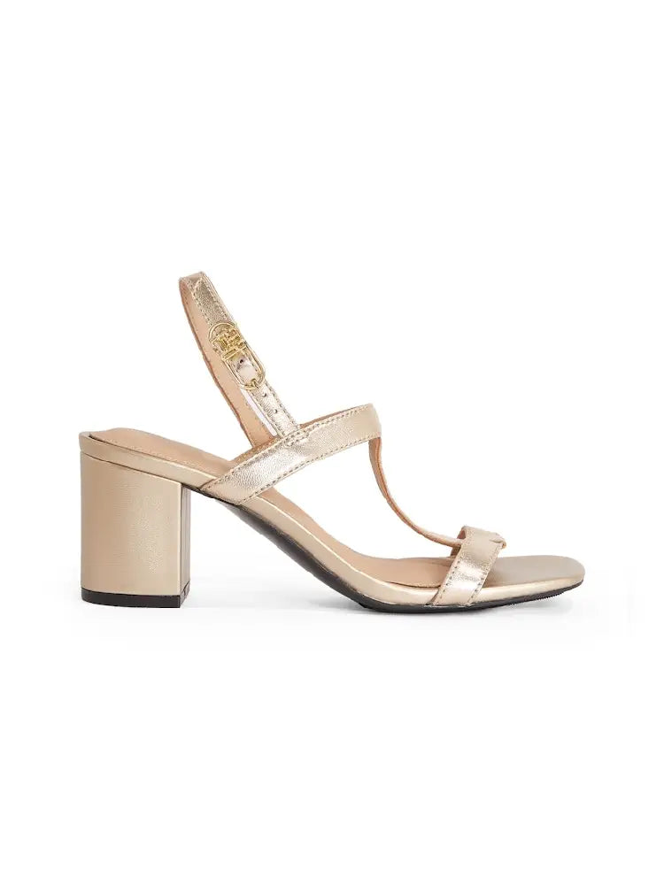 These head-turning sandals are all about modern elegance, showcasing a block-heeled, T-bar silhouette in an eye-catching metallic leather.