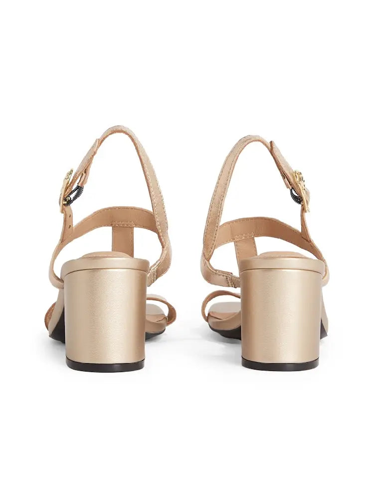 Metallic Leather Block Heel Sandals