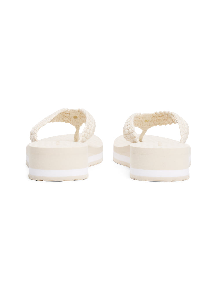 Embrace chic poolside styling with these flip-flops, featuring a crochet strap, a low wedge heel and centralised plaque branding.
