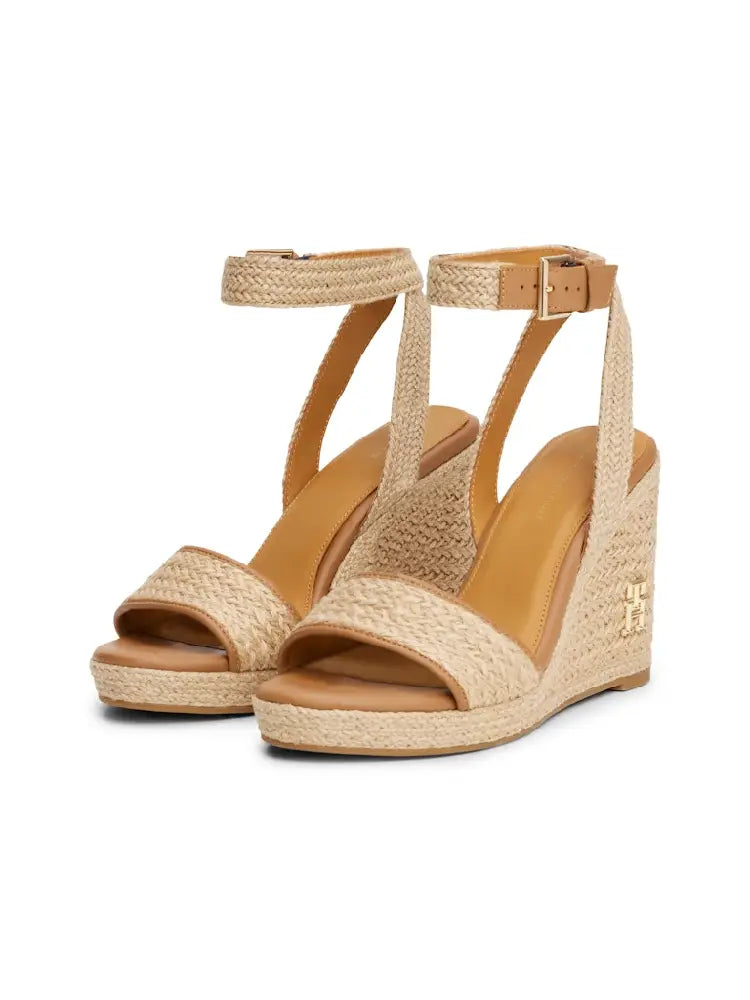 TOMMY HILFIGER Monogram Linen Rope Wedge Heeled Sandals